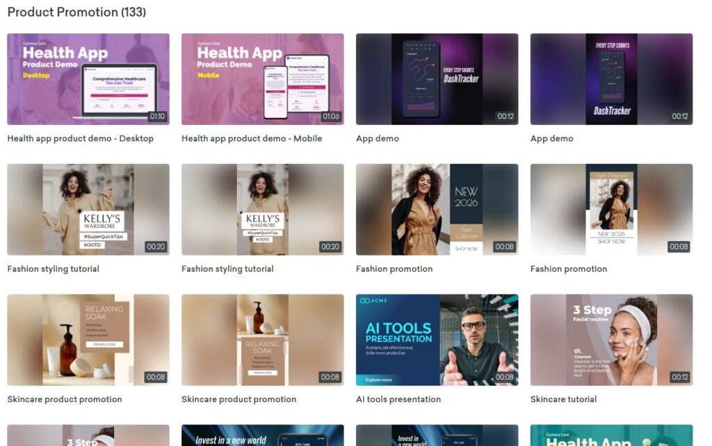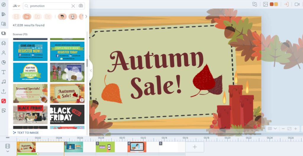 Promotion(プロモーション)で検索すると70以上のシーンと100以上の動画や画像(Shutterstock)も見つかります。
