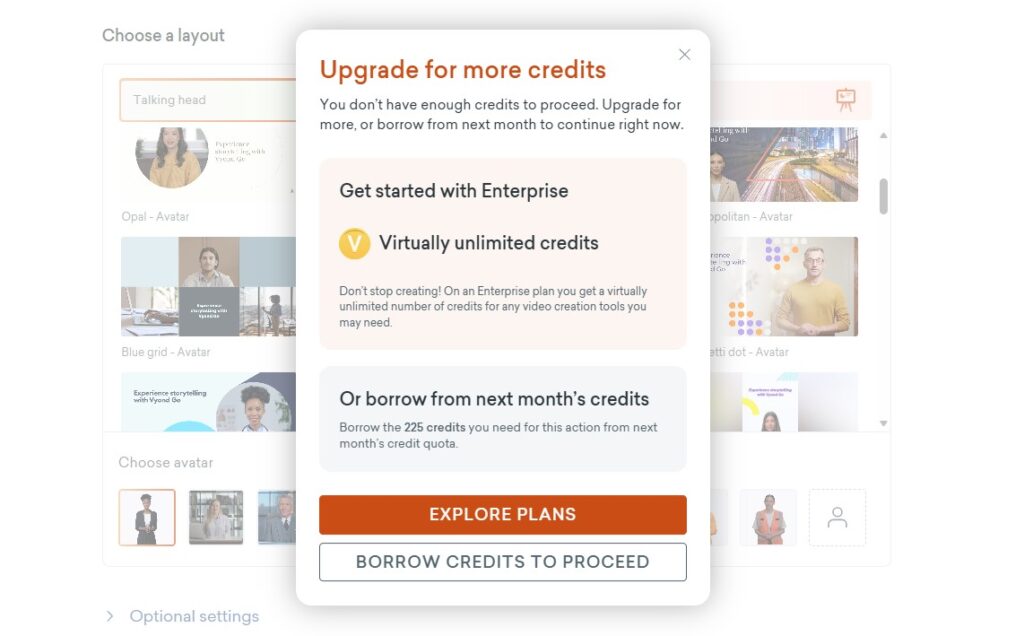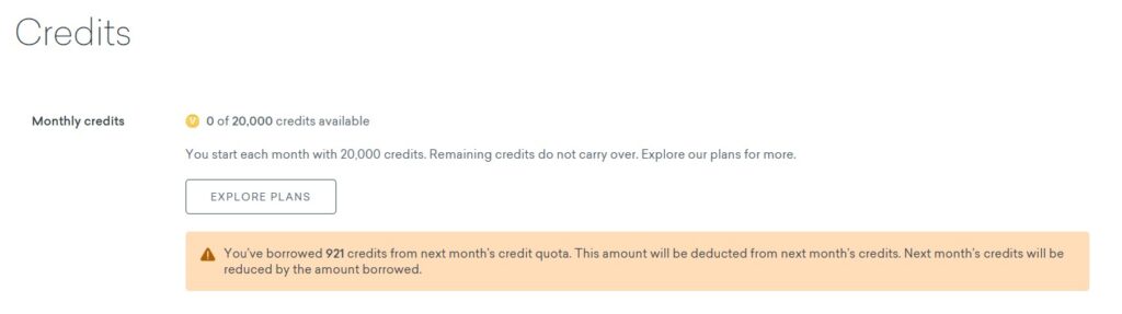 You’ve borrowed xxxx credits from next month’s credit quota. This amount will be deducted from next month’s credits. Next month’s credits will be reduced by the amount borrowed.