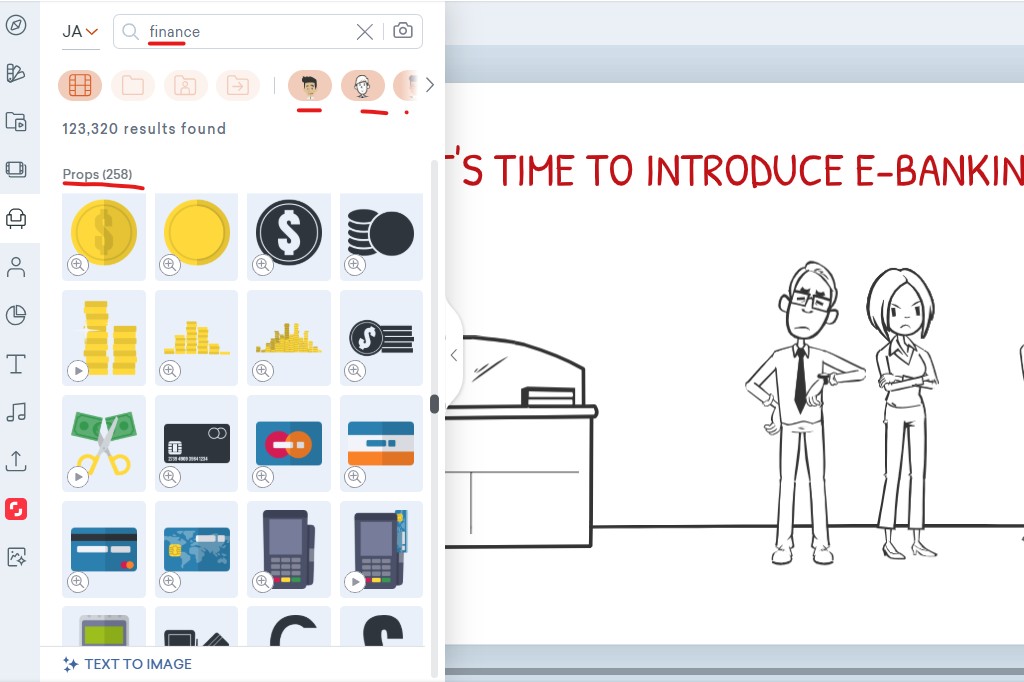 VYONDでは金融 ファイナンス、アセットマネージメントの提案に使えるアニメーション素材も多く含まれています。