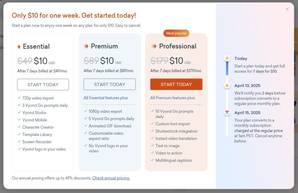 10ドル(クレジットorPaypal)を支払い、7日間だけお好きなプランをお試しできます。※