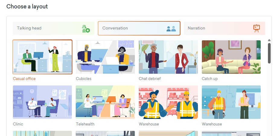 VYOND Go に新しいレイアウトが24種類追加されました。使い方はこれまでと同じです。
