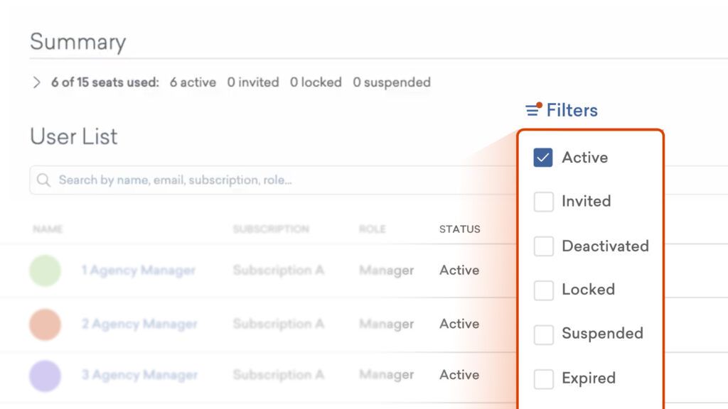 チーム管理者様には、User一覧画面に2点の変更が加えられます。これにより、ご契約中のサブスクリプション全体におけるシートの使用状況を、より容易にご確認いただけるようになります。