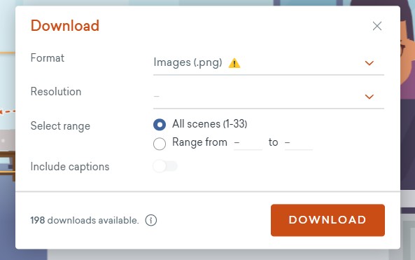 画像としてダウンロードするシーンを選択できます。Creditsは200~190ほど消費されます。