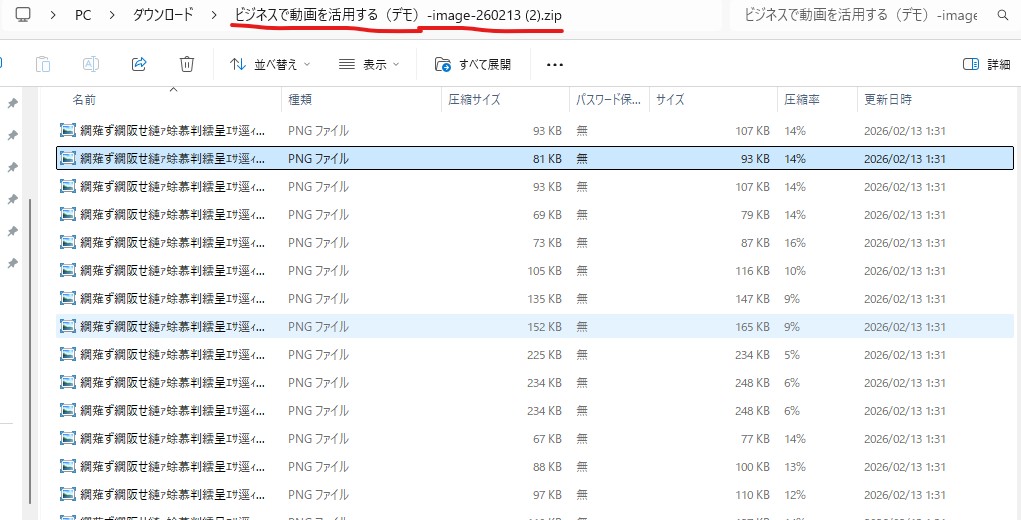ダウンロードデータはProject名の圧縮ZIP形式です。日本語のProjectの場合、解凍するとファイル名は文字化けします