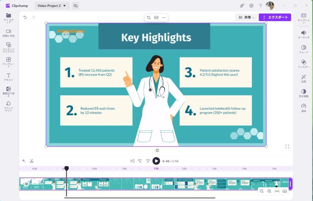 Microsoft Clipchamp のオンライン動画エディター(Windows 11標準搭載)